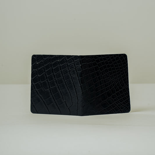 CROCODILE LEATHER MATTE BLACK SLIM MONEY CLIP