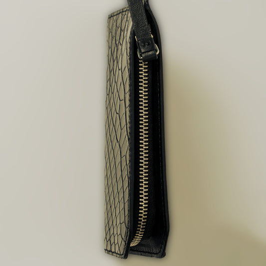 CROCODILE LEATHER MATTE BALCK ZIPPER MULCH CASE MINI