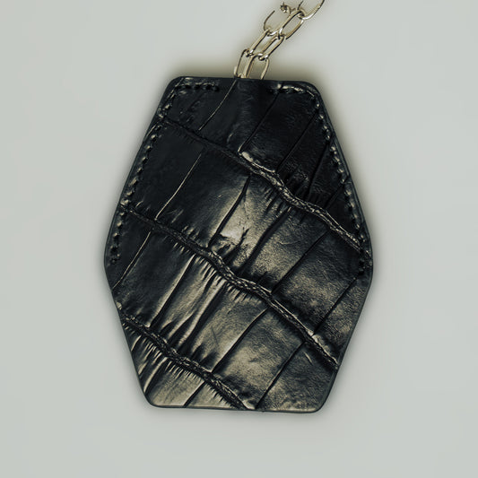 CROCODILE LEATHER MATTE BLACK KEY NECKLACE[NFC]
